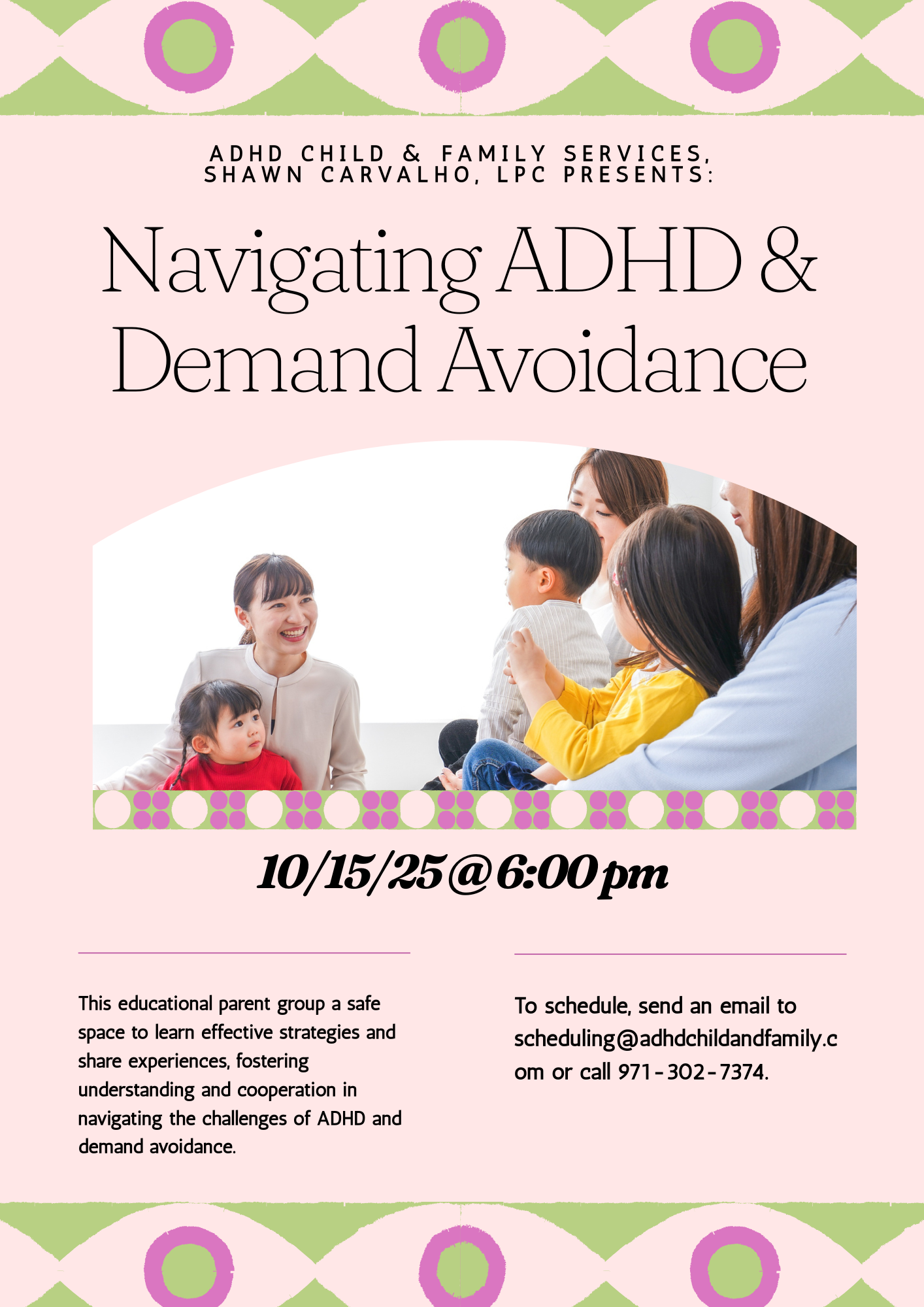 This educational Parent group is a safe space to learn effective strategies and share experiences, fostering understanding and cooperation in navigating the challenges of ADHD and demand avoidance.