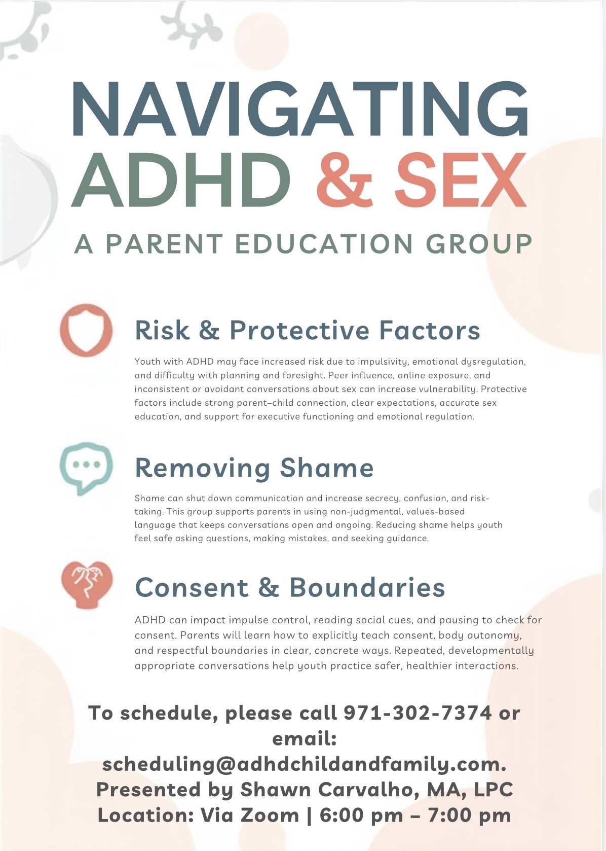 Organizer Shawn Carvalho, MA, LPC Website https://adhdchildandfamily.com/providers/shawn-carvalho-ma-lpc-2/ Local Time Timezone: America/New_York Date: Feb 11 2026 Time: 9:00 pm - 10:00 pm + Add to Google Calendar + iCal / Outlook export